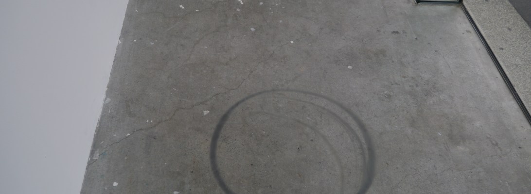 Disco motors power fine wooden parabolas, drawing circles in the sand. A paper planet slowly turns in its own time. Sandcastles dry out and deteriorate. A small orange dinosaur is trapped under a plastic cup in a game of three cup shuffle. A small man in an abandoned plant has a video camera trained on him constantly, and as the viewer comes into the scene they are framed in the projection on the wall. Shifts of scale and perspective implicate the viewer in a world of perpetual motion and changing perspectives.